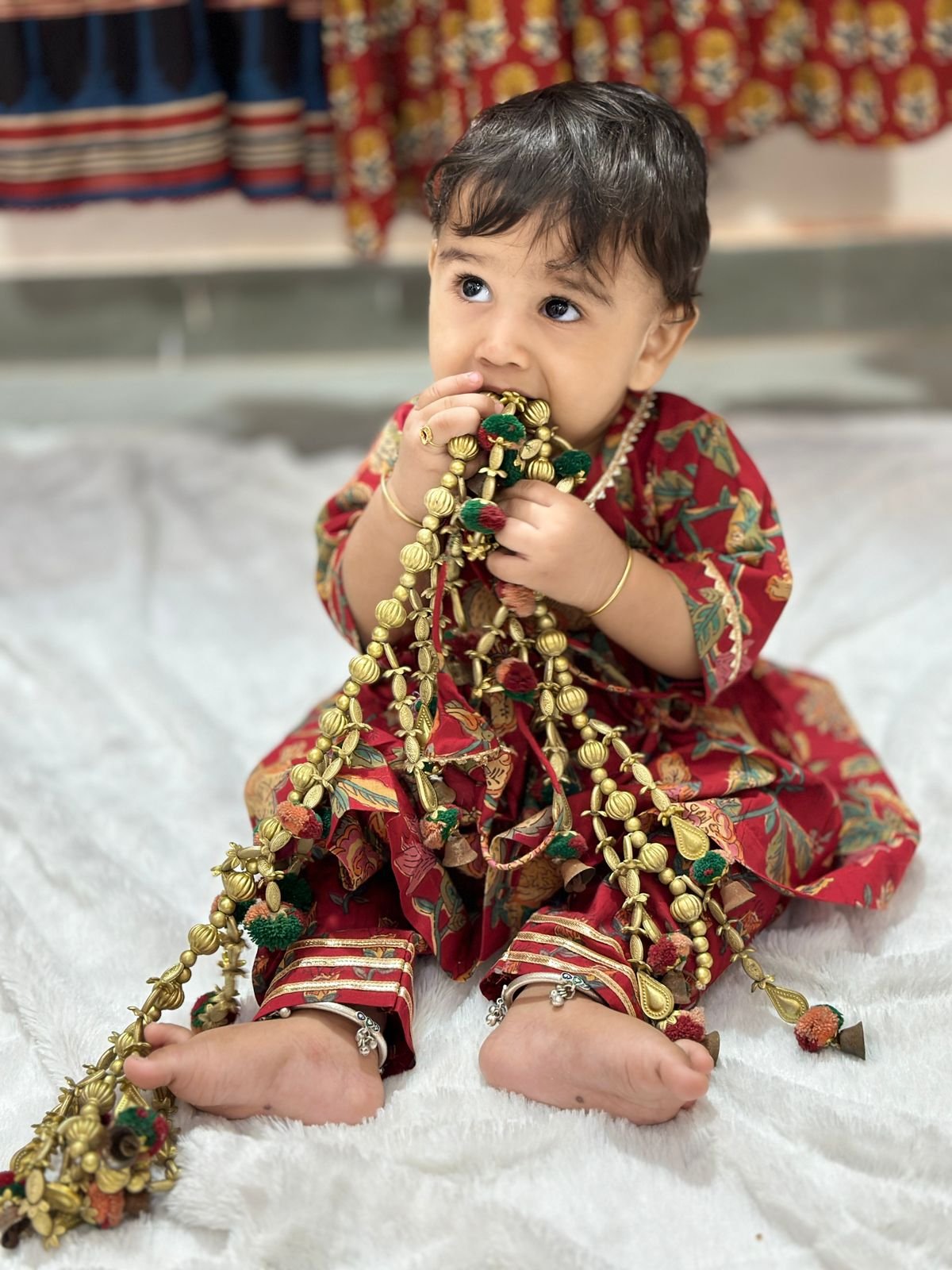 Add a splash of fun and tradition to your child’s wardrobe with this exclusive red elephant print shirt by Borncry. Designed for comfort and crafted in 100% breathable cotton, this shirt is soft on the skin and perfect for active kids. The cute black elephant motifs bring an ethnic yet playful vibe – ideal for casual days, festive occasions, or family get-togethers. Finished with a neat collar, short sleeves, and button-down front, this shirt ensures both charm and ease.