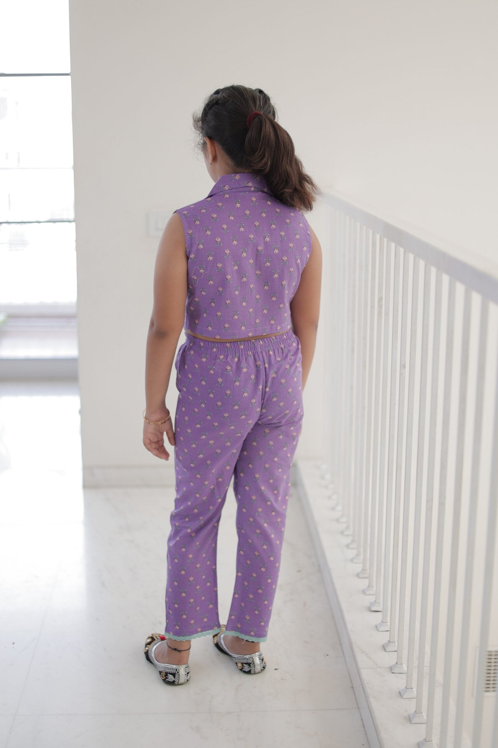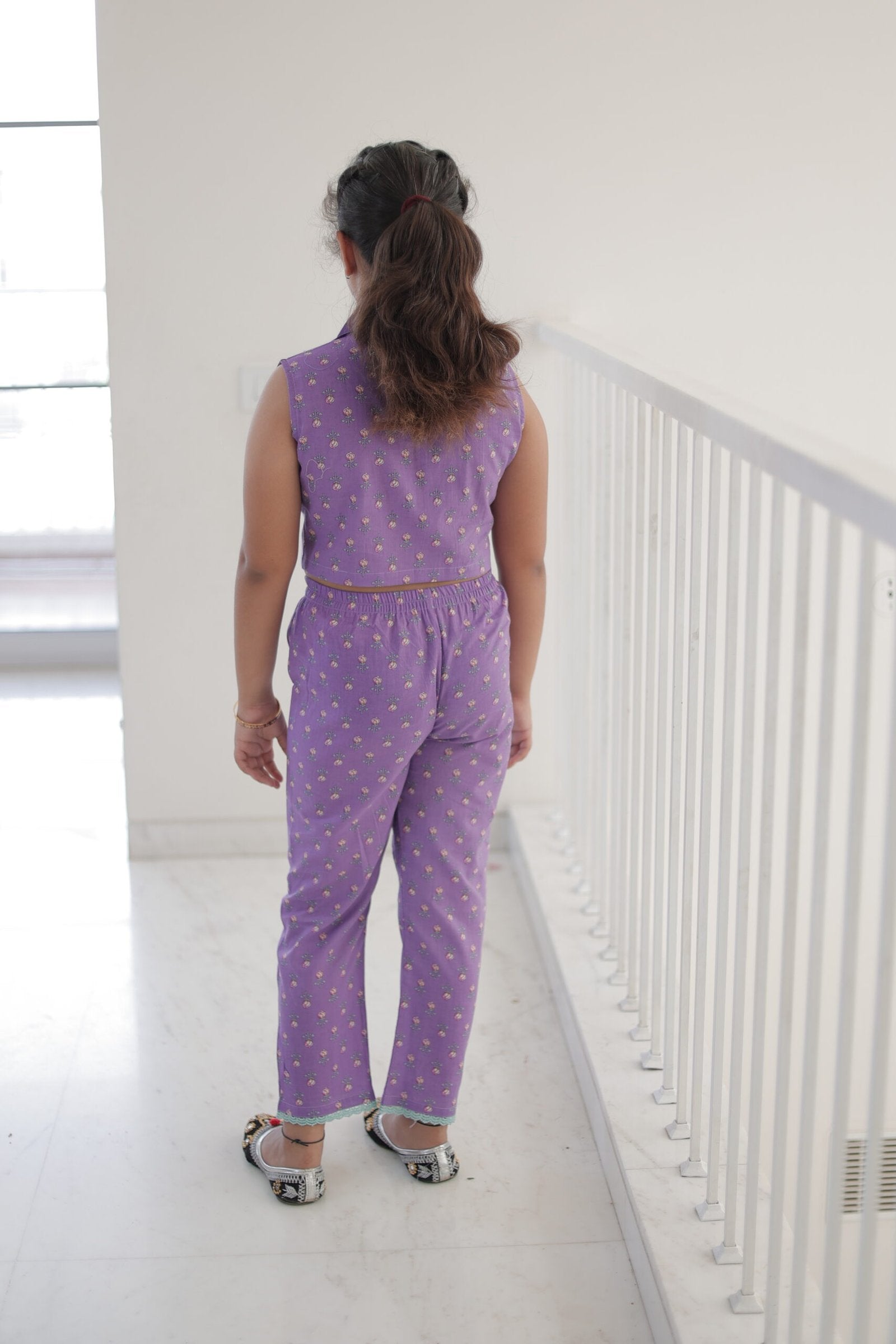 Girls’ Lilac Floral Coord Set (Sleeveless Shirt Top & Straight Pants)