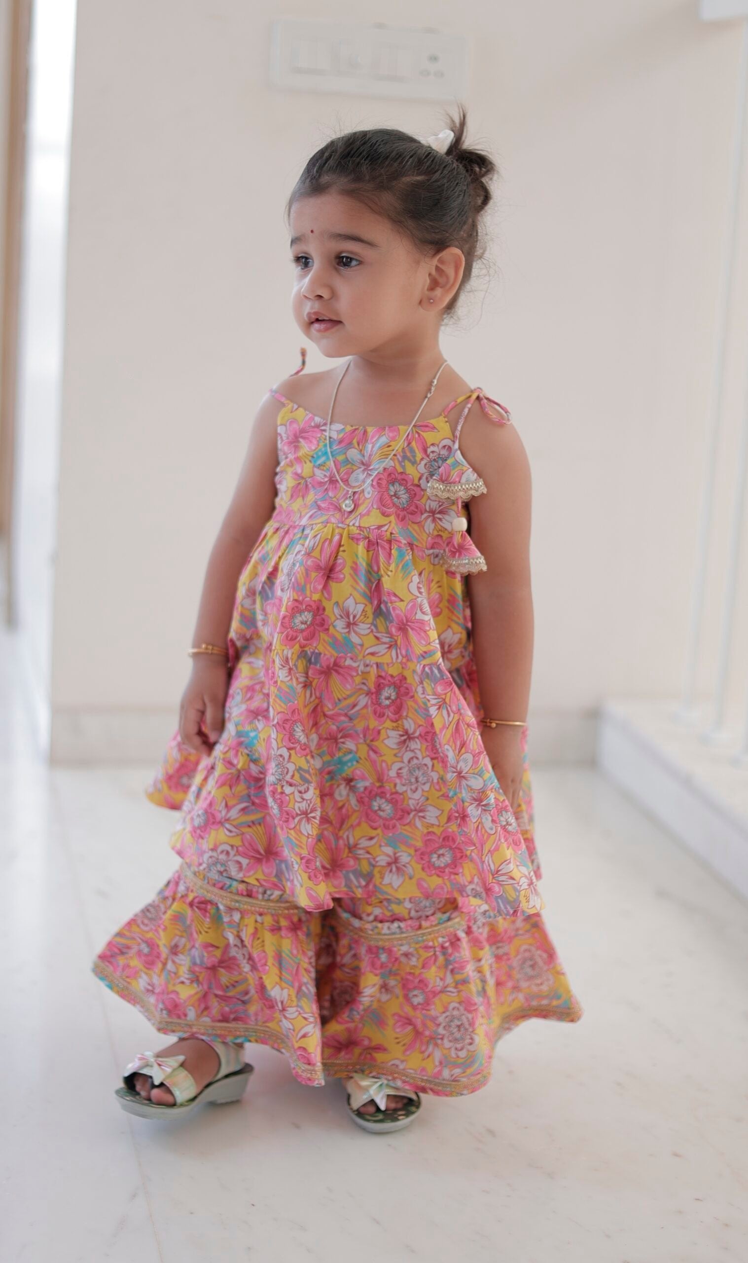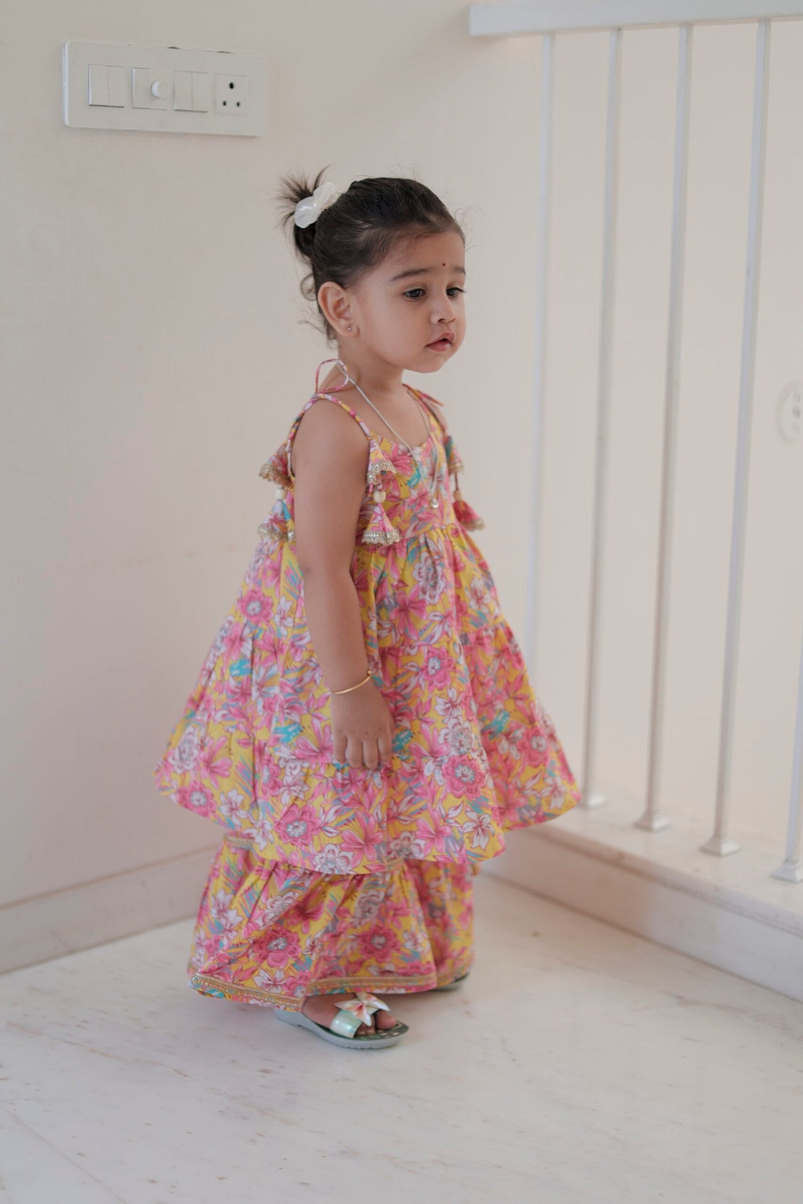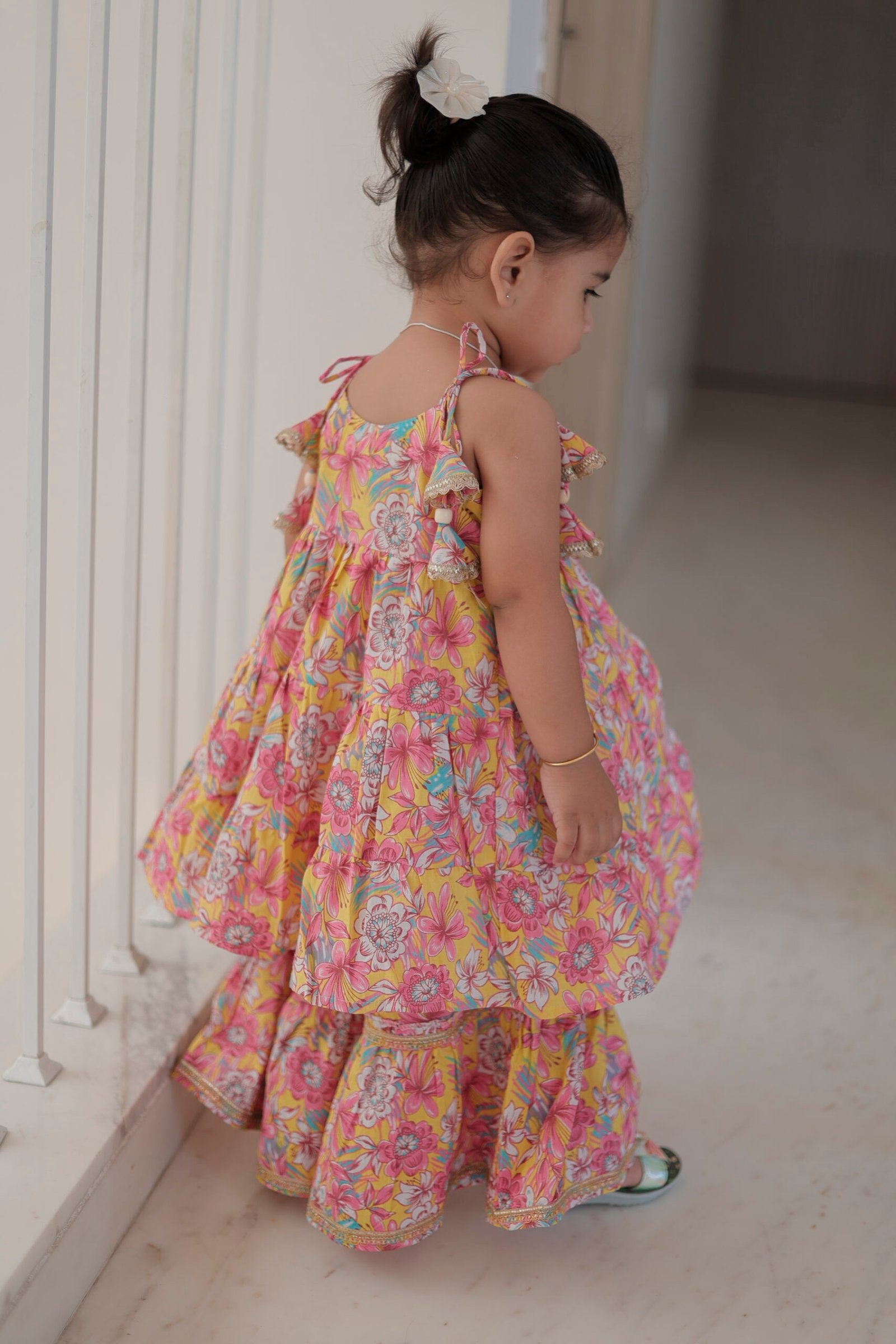 Tropical Bloom Ruffle Layered Dress for Girls
